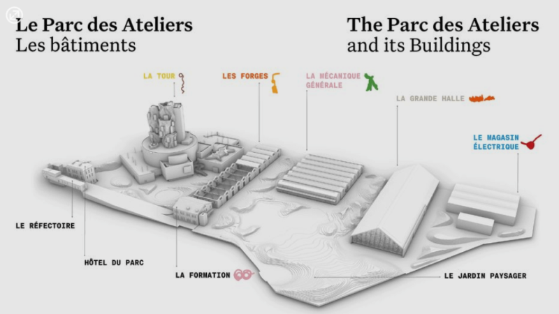 Face à l’École Nationale Supérieure de la Photographie de l’agence d’architecture Marc Barani à laquelle nous avions collaboré, la Tour complète le Parc des Ateliers, une ancienne friche industrielle de la SNCF dont les bâtiments ont été rénové par Selldorf Architects et le parc avec ses jardins et son étang créé par le paysagiste Bas Smets.