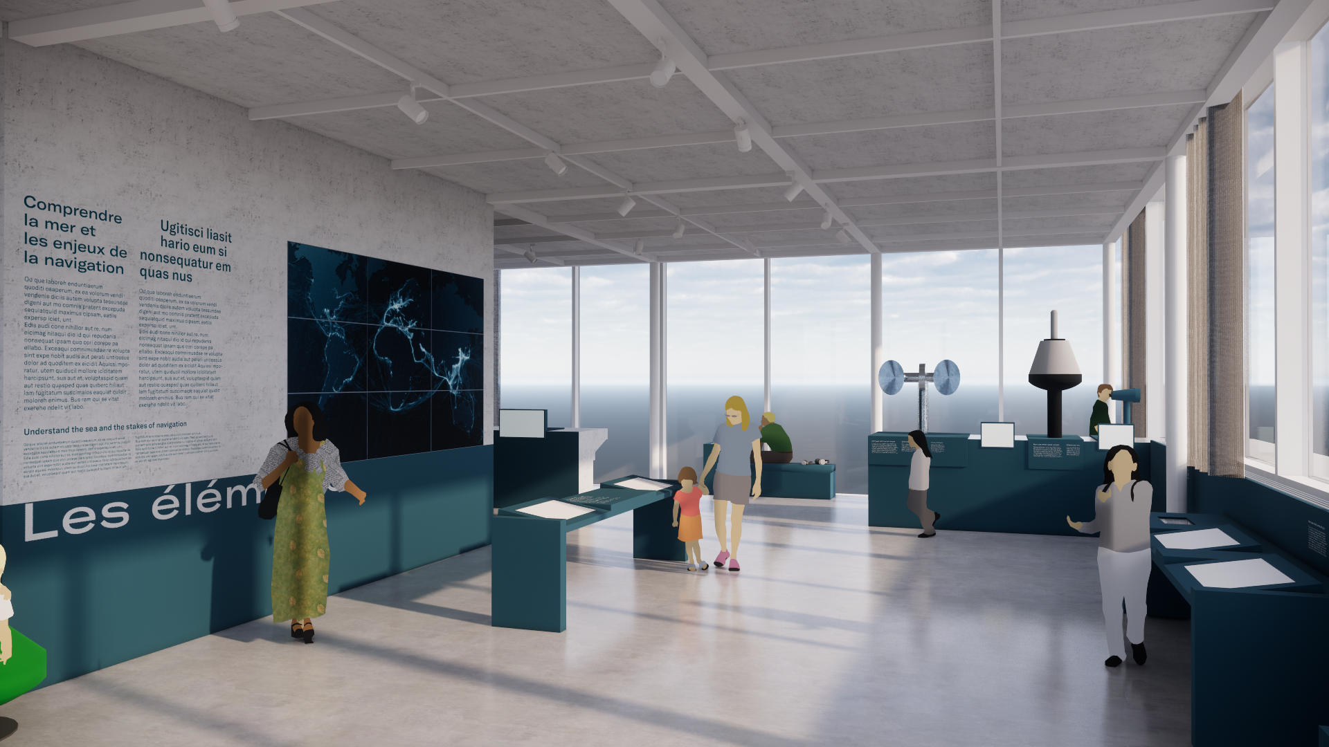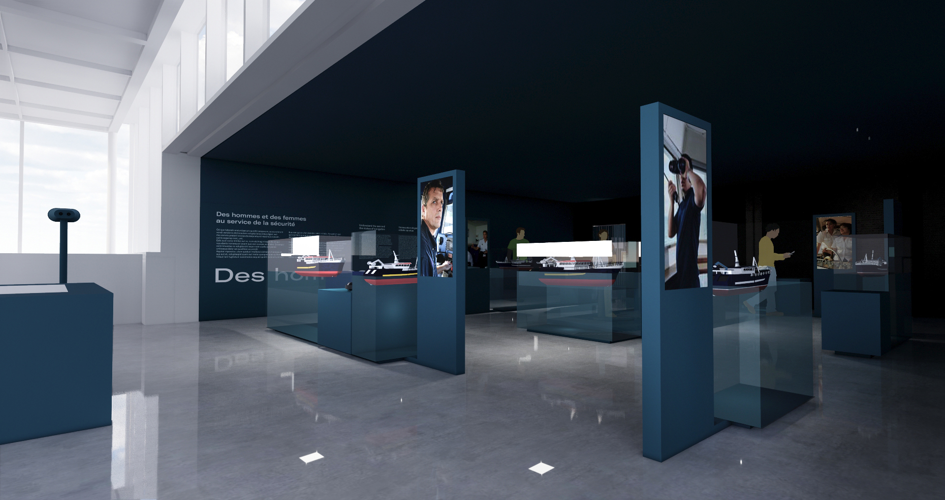 The lighthouse interpretation centre is located on the 1st Eperon in the port of Brest. A project with a resolutely modern architecture, the museum is a centre for observing maritime navigation, its heritage, its codes, its signs and its trades. Scenography is in synergy with architecture. It is an encounter between discourse and space, between inside and outside, between shadow and light, between science and the field of the sensitive, between observation and understanding.