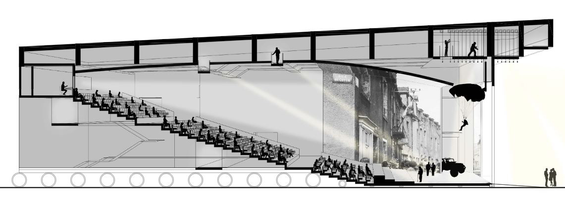 Creation of mobile theater, playground, public reception building, rehearsal space, technical and logistical spaces