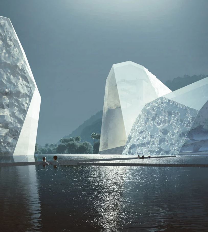 Named “The Iceberg and the Sea”, the project of Natural History Museum created by Open Architecture revolves around 6 vertical volumes rising from the “Inland Sea”. These icebergs welcome the public programs of the museum, each with its own specific focal program : the lobby, the 500-seat theatre, the 300-seat Imax, the library, the children education and the temporary exhibition spaces.
