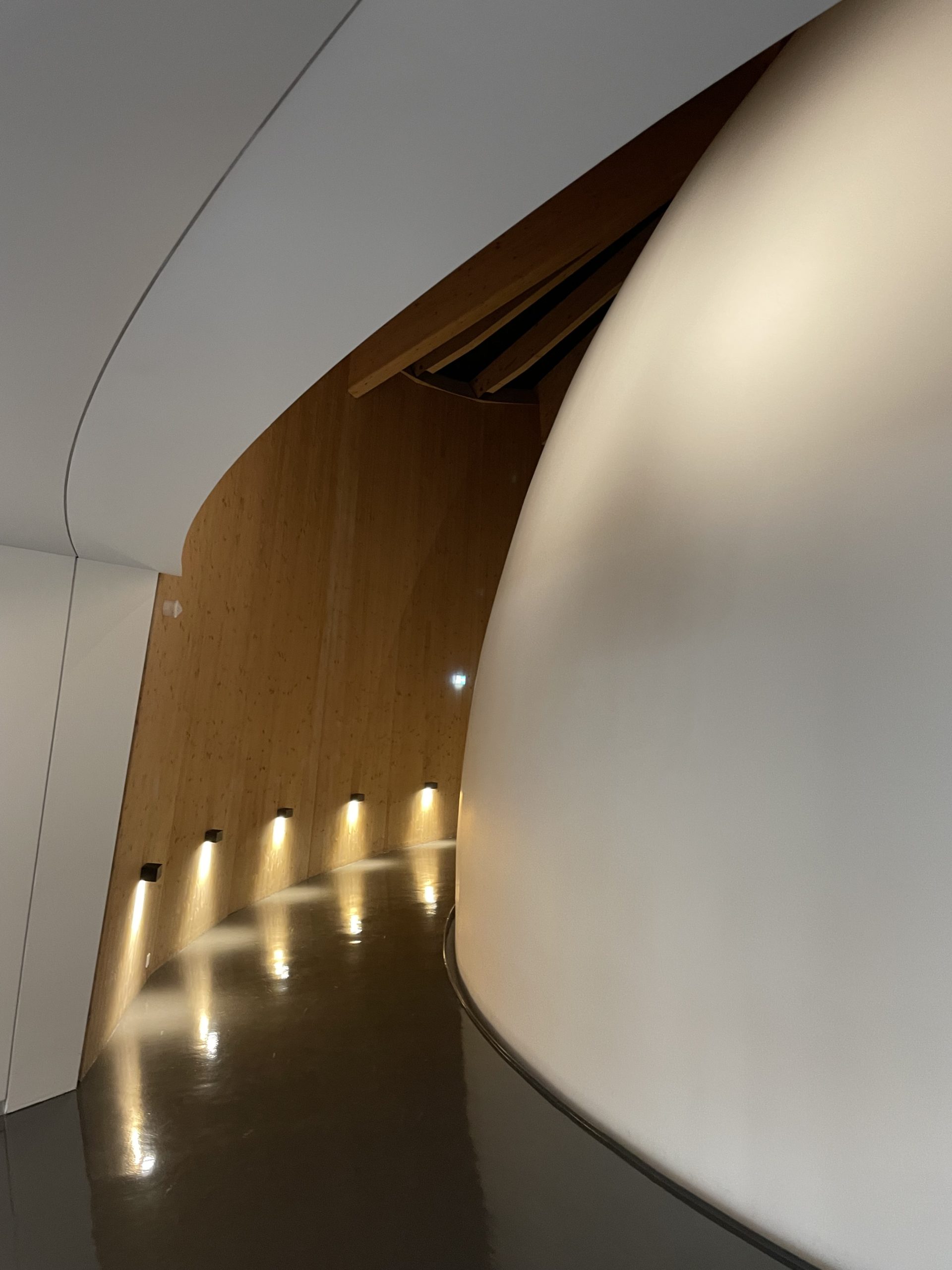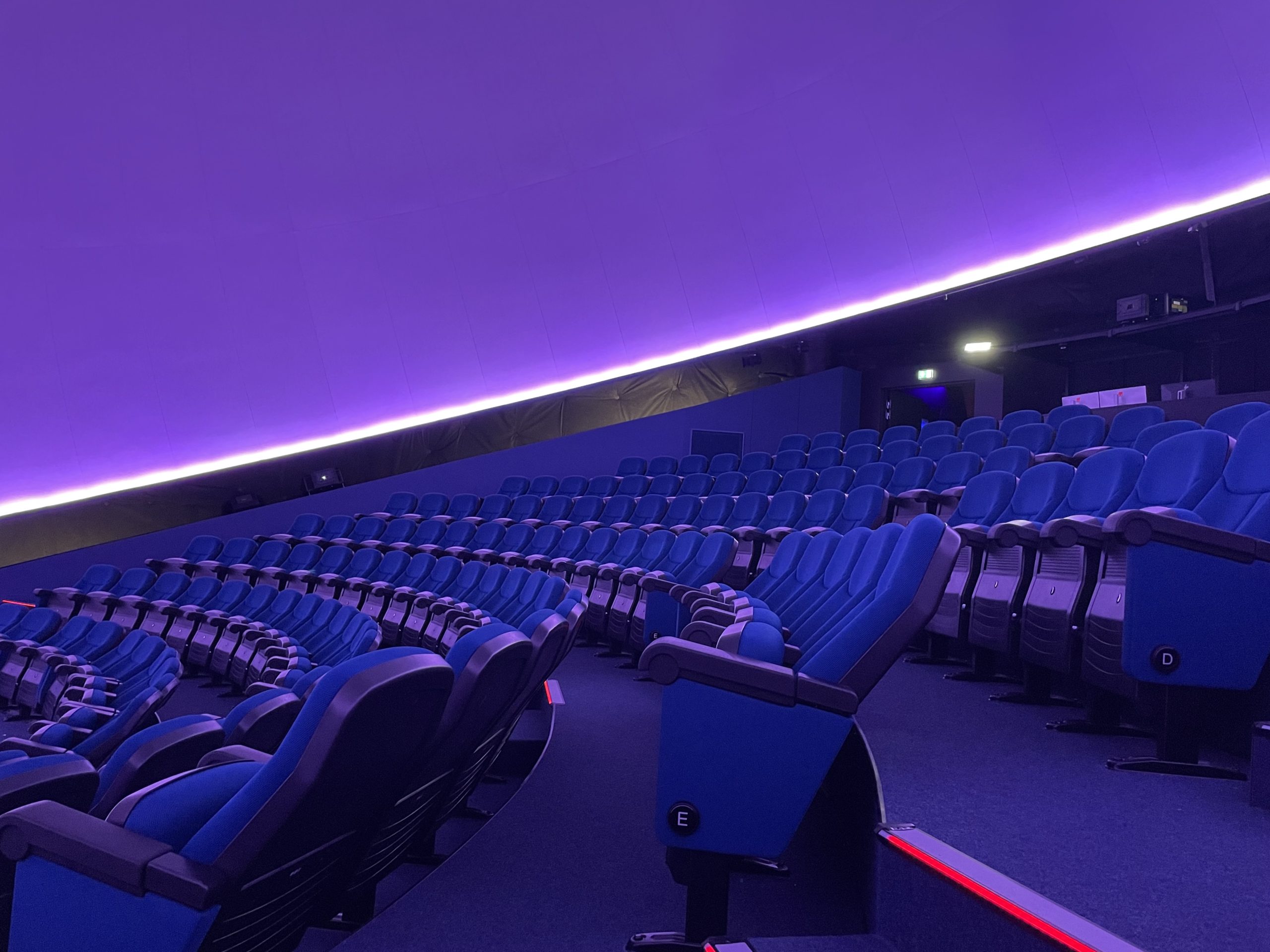 The second supports the planetarium’s 15 m-diameter dome, suspended to lower the horizon line as much as possible, and enhance spectator immersion. It can accommodate 250 people, comfortably seated in armchairs with different inclinations to ensure maximum visibility of the projection, composed of 6 video projectors and a spatialized sound diffusion system.