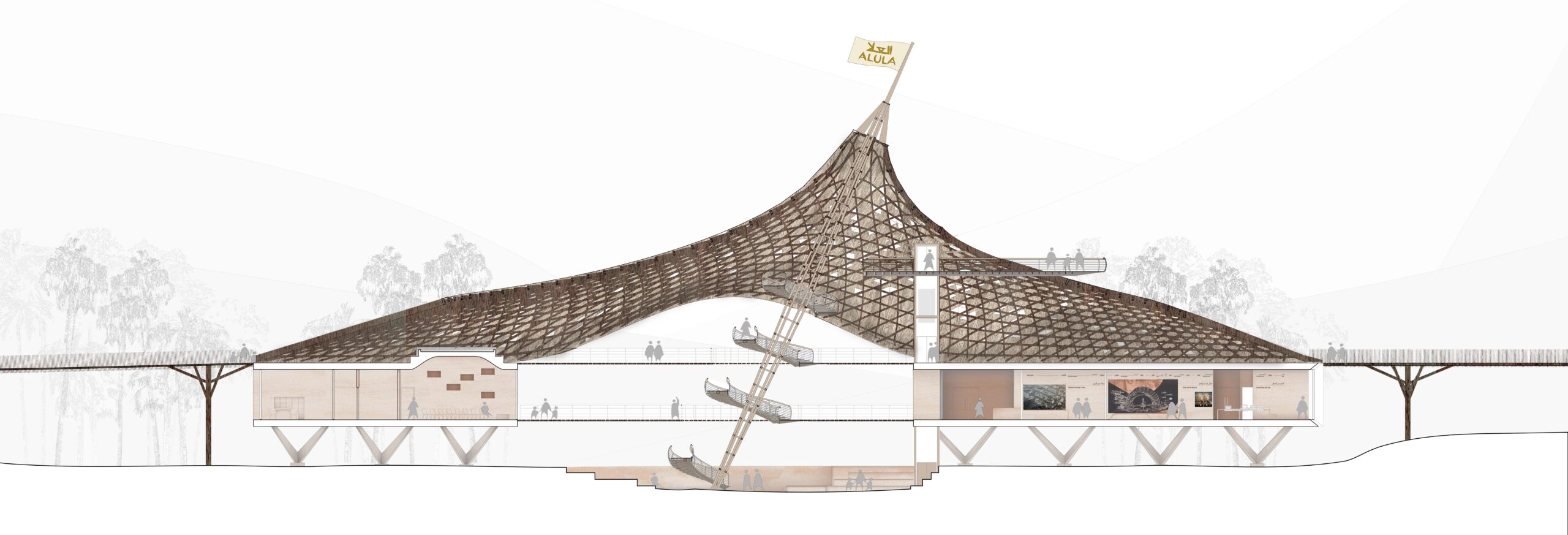 Le centre d’interprétation de Dadan fait partie d’une expérience globale et dynamique pour les visiteurs. Il donne les clés d’interprétation du site, mais est aussi un point privilégié pour la compréhension de l’ensemble de la Vallée d’Al’Ula. Il est un portail entre le site et le skywalk, un espace de transition et de «transformation» qui explique pourquoi et comment les puissants royaumes Dadanite et Lihyanite ont été profondément enracinés dans une relation pérenne entre l’homme et la nature, construisant ce « paysage culturel ».