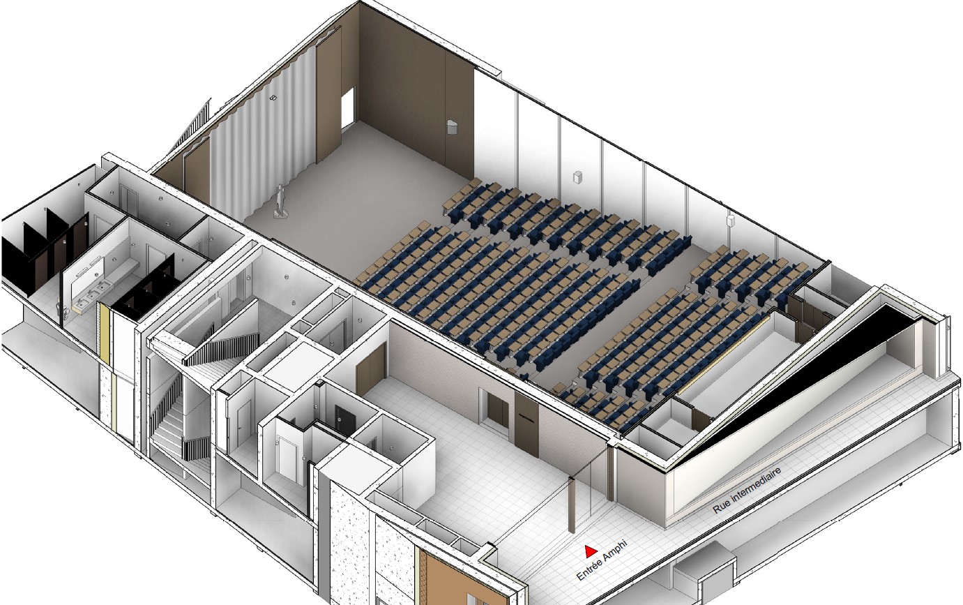 L’amphithéâtre du collège offre 300 pl. assises avec tablettes.