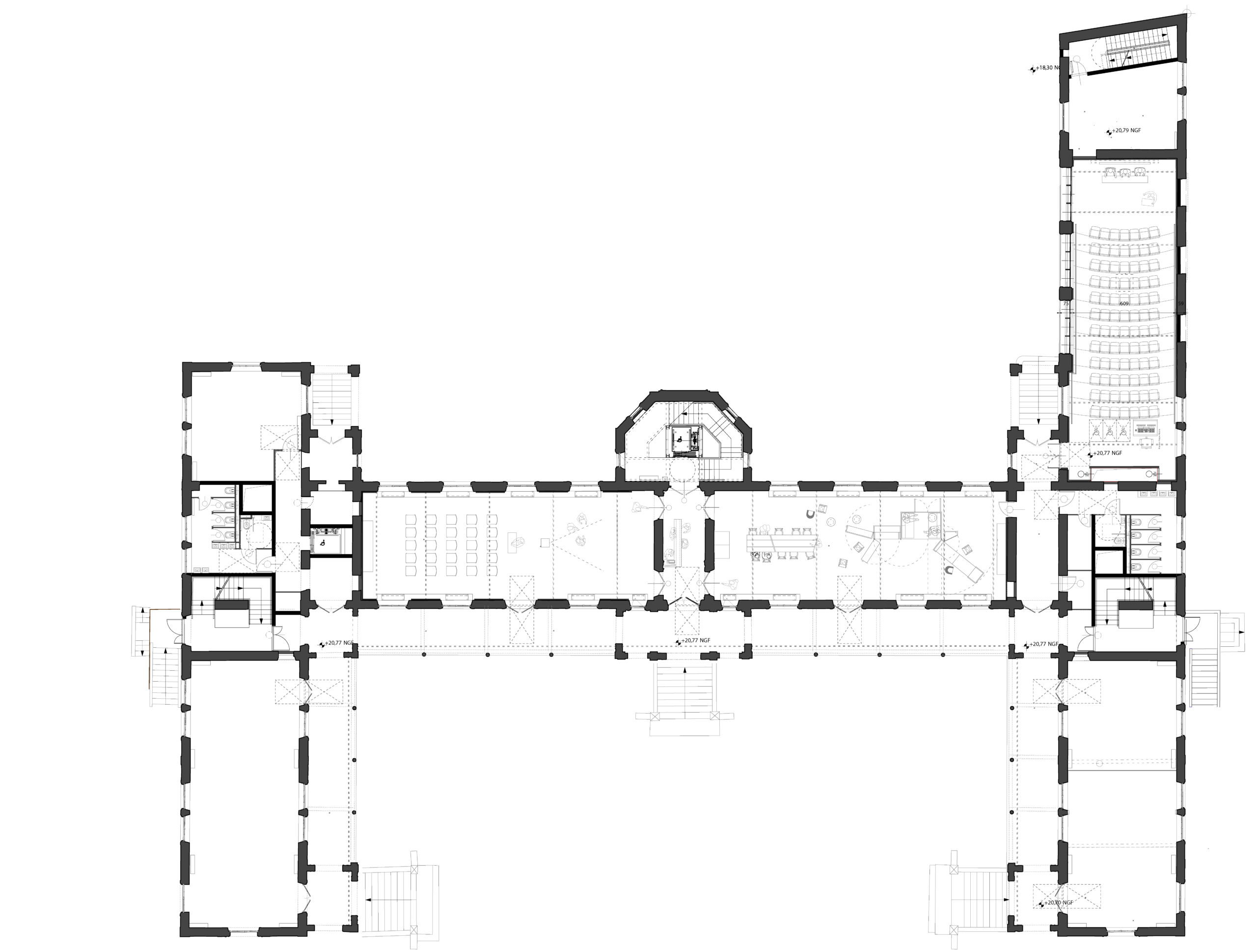 Auditorium conférence : 87 pl. / ouverture scène : 6 m