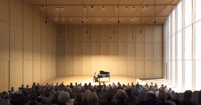 Le nouveau bâtiment comprendra une grande salle pouvant proposer jusqu’à 1.700 sièges et une petite salle de 500 sièges. Il abritera également des bars, un grand foyer avec une vue panoramique sur la ville et des locaux pour d’autres activités culturelles.